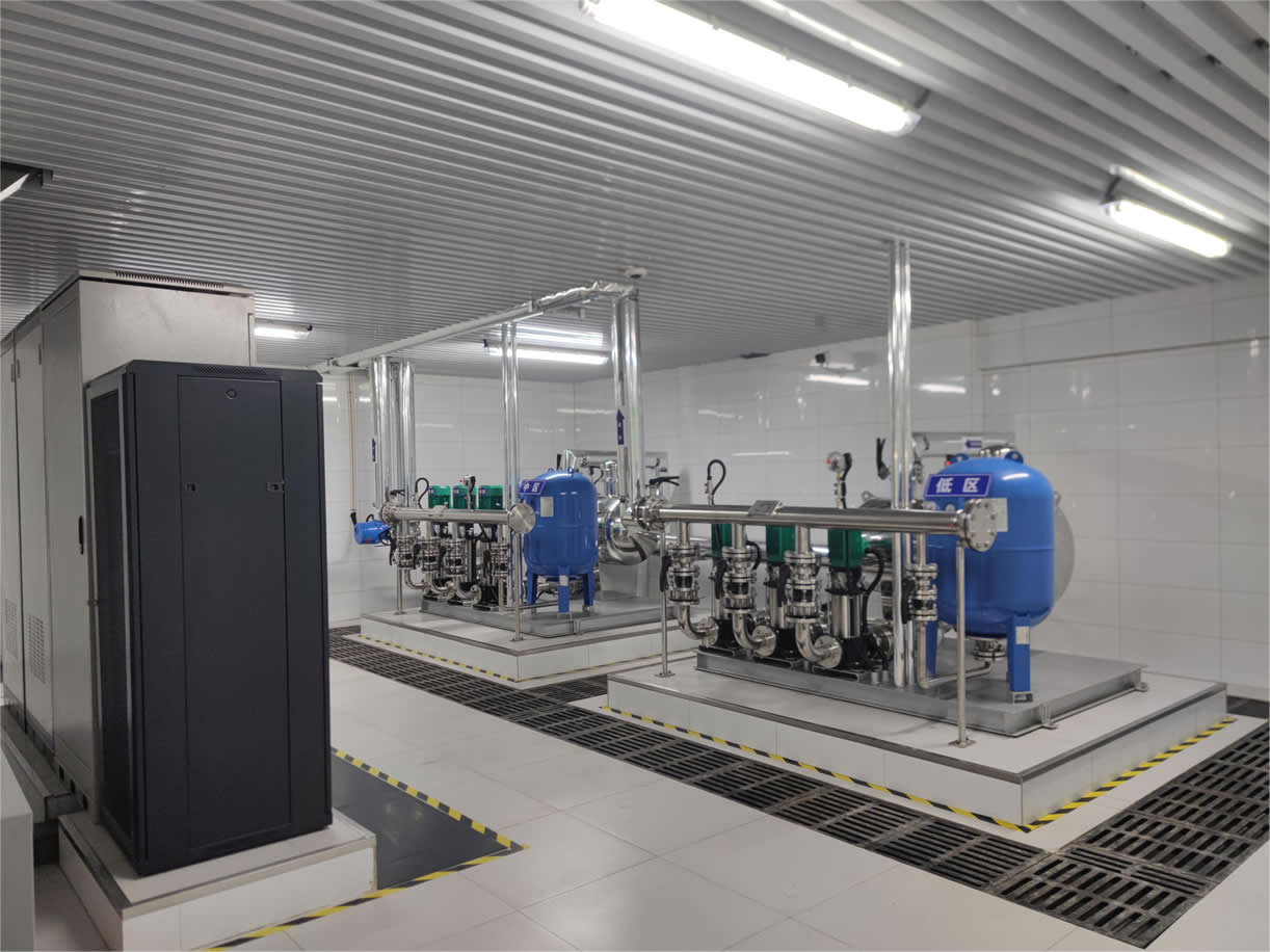 ①采用變頻恒壓供水,消除了主管網(wǎng)壓力波動,保證了供水質量,而且節(jié)能效果明顯,并延長了主管網(wǎng)及其閥門的使用壽命。